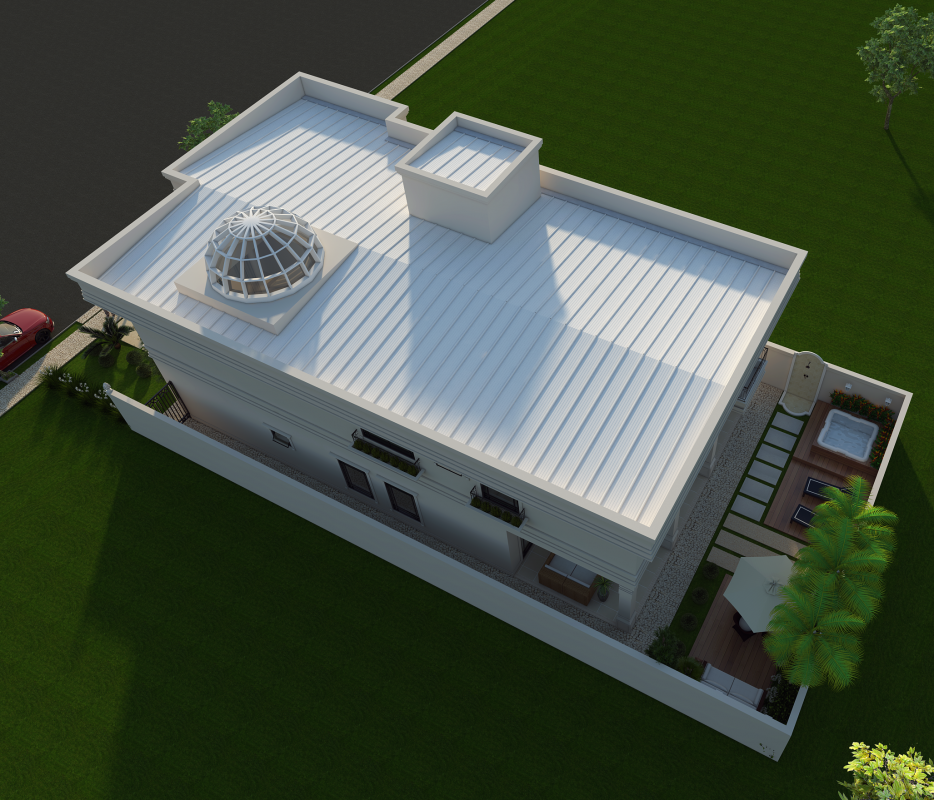 projeto casa sobrado arquitetura neoclássica telhado embutido terreno 12×30 com claraboia no teto da sala