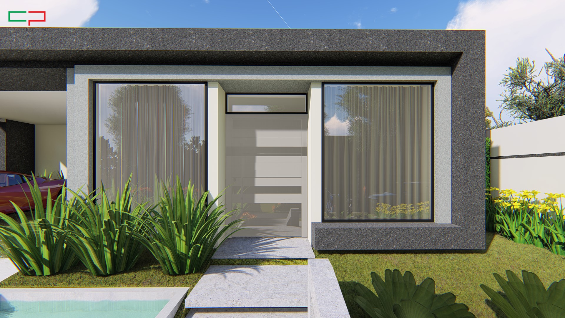 projeto casa terrea moderna caixote fachada reta alphaville campinas terreno aclive 15x30
