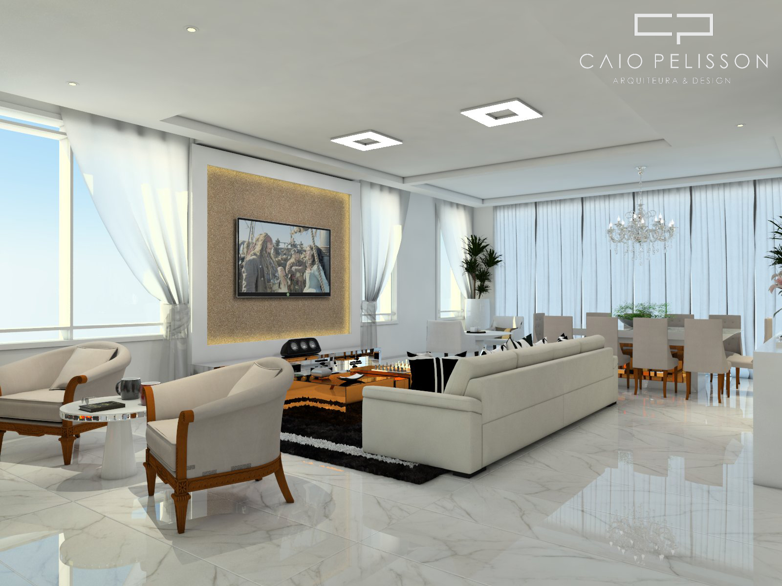 projeto design interiores decoração sala living estilo neoclássica